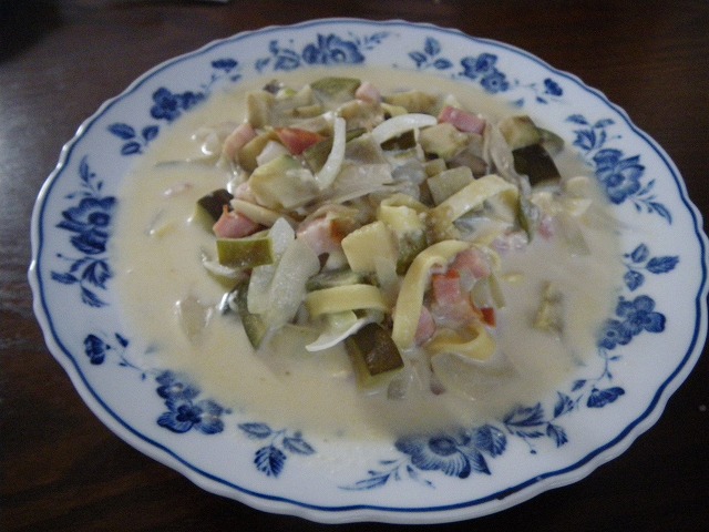 牛乳とブイヨンスープをベースに作ったスープに麺をぶっこんだだけです。