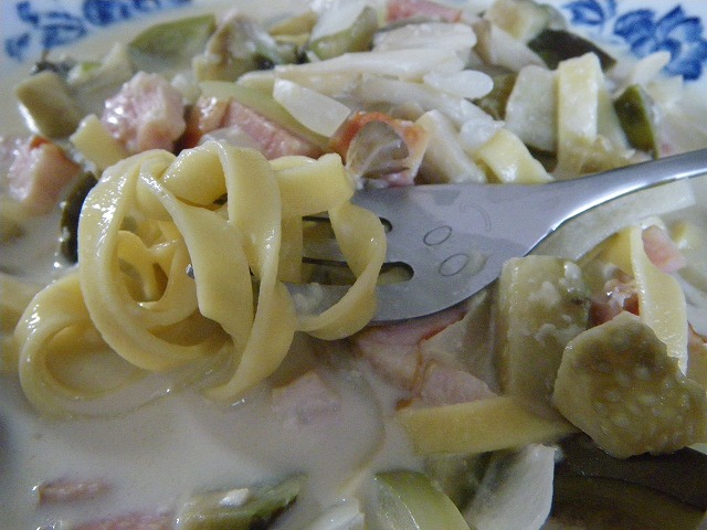 お昼に作ったパスタの切れ端が一緒に茹でられてしまいました。