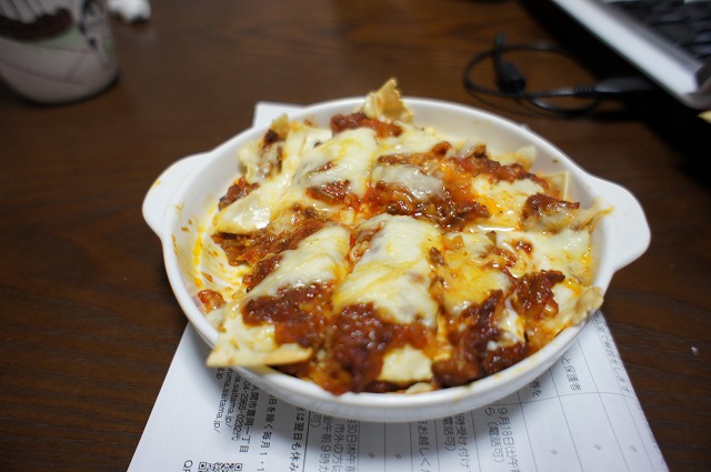 ラザニア用に作ったホワイトソースとミートソースで、ドリアを作ってみました。チーズに焦げ目が足りませんが、とっても美味しいです。